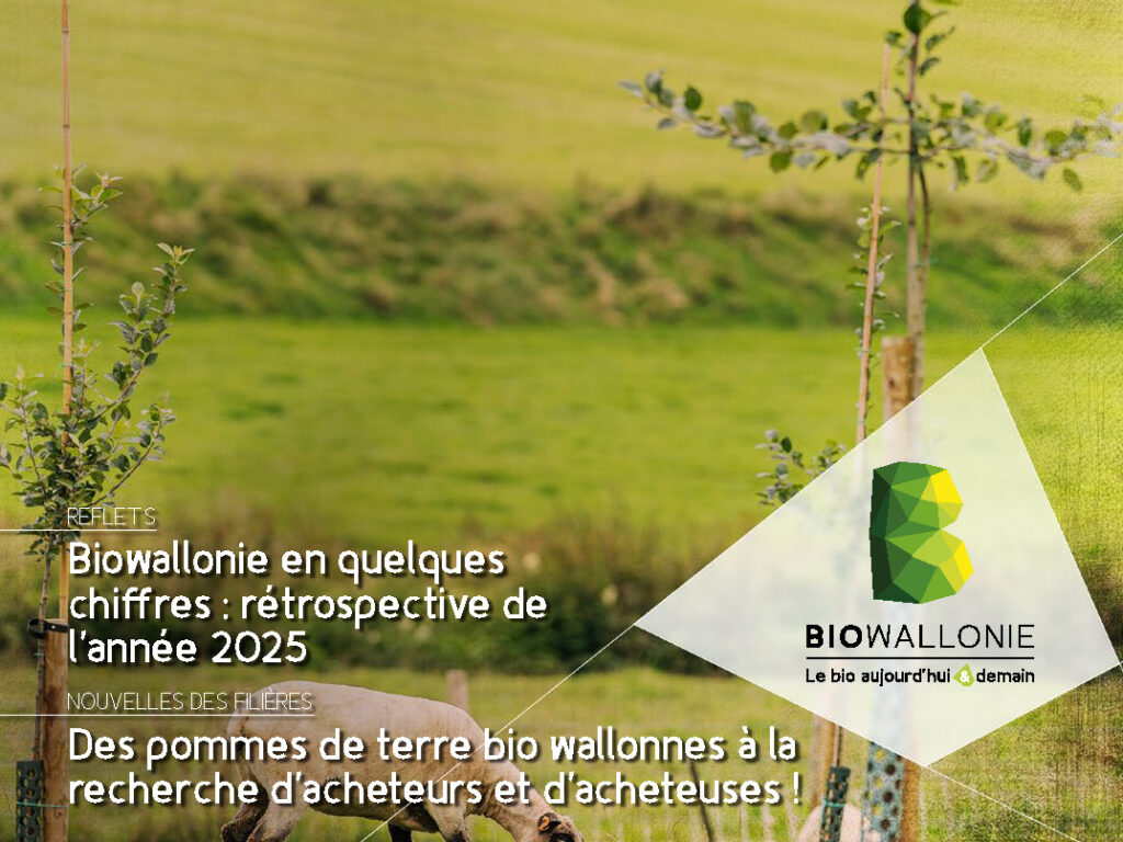 • Reflets : « Retour sur une étude scientifique riche d’apprentissages pour l’agriculture wallonne » ; « Biowallonie en quelques chiffres : rétrospective de l’année 2025 » ;
